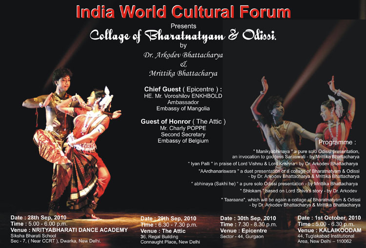 28th Sep, 2010 from 5.00 - 6.00 p.m. at NRITYABHARATI DANCE ACADEMY, Siksha Bharti School, Sec - 7, Dwarka, Delhi.